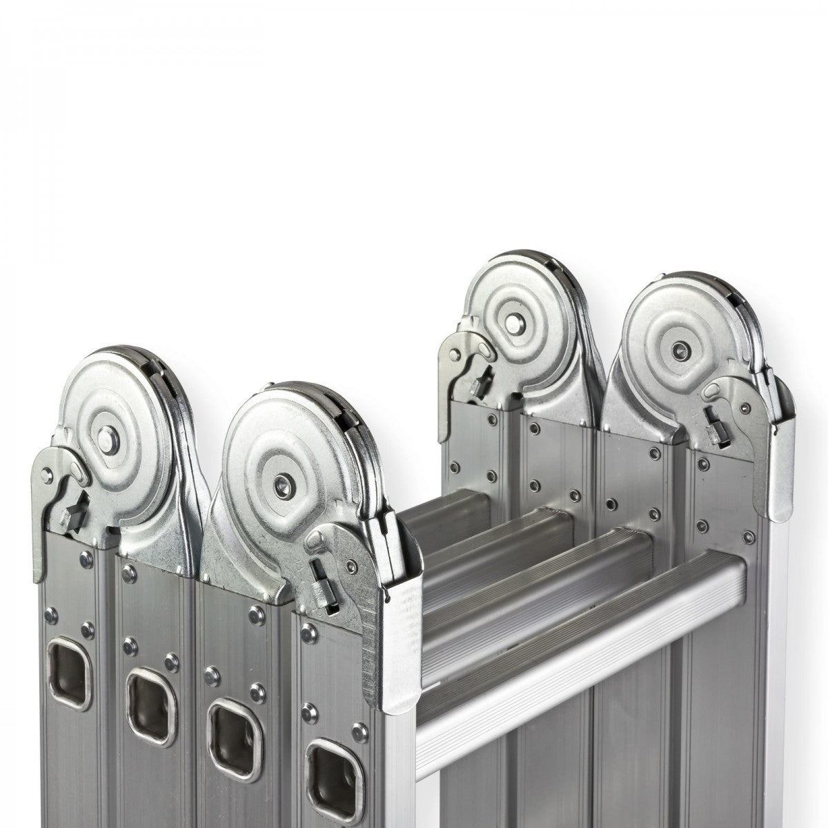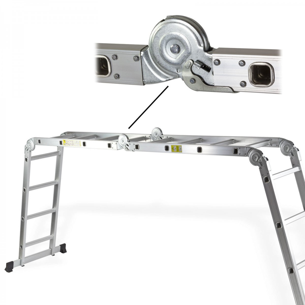 - Das Sicherheitsrastgelenk gewährleistet eine schnelle und sichere Funktion der Leiter.
