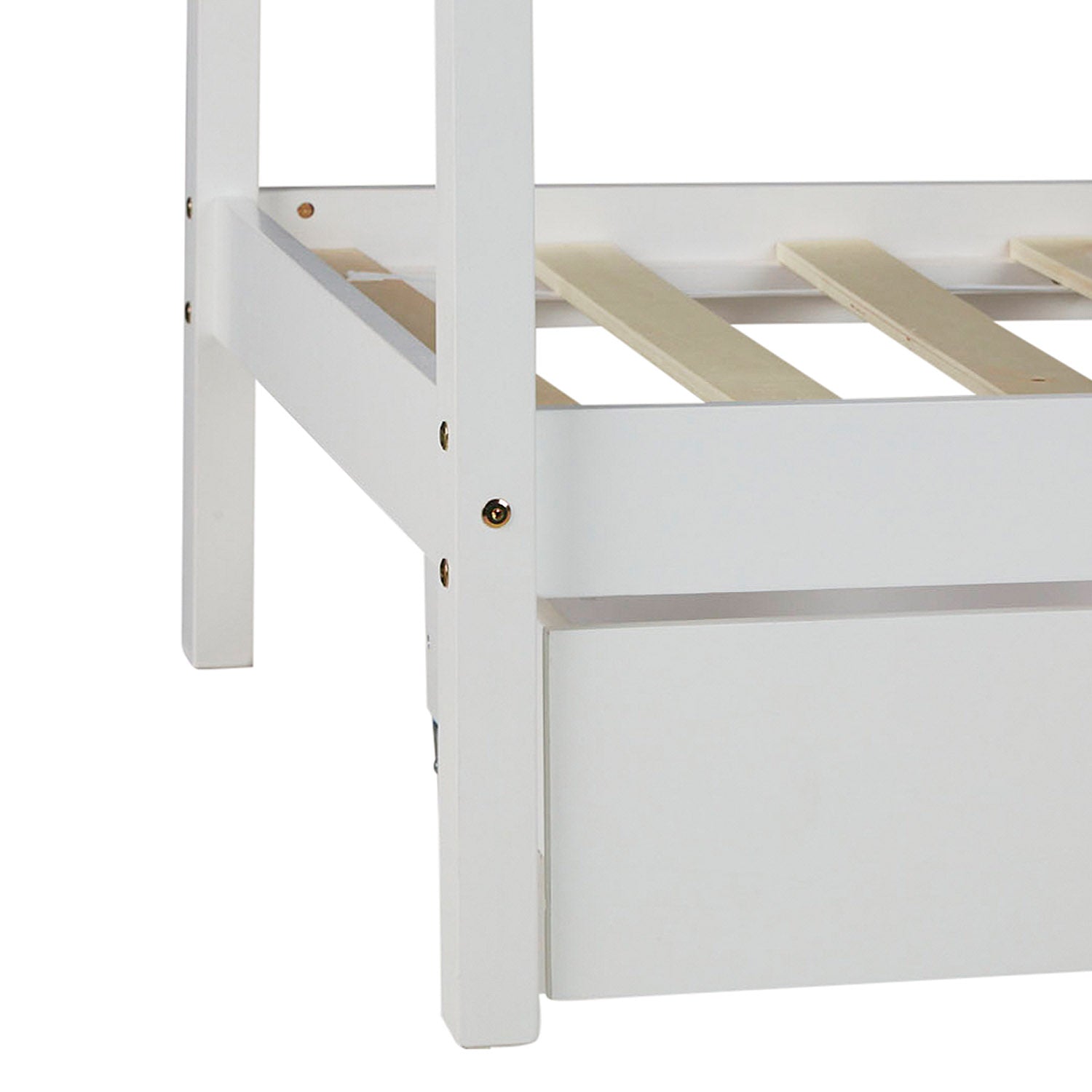 Die stabile und sicher Konstruktion in elegantem Weiss wird aus massivem Kiefernholz gefertigt und lässt sich gut in alle Arten von Kinder- und Jugendzimmern integrieren. Besonders kinderfreundlich wird das Spielbett durch die pflegeleichte und hochwertige Oberfläche des Holzes. Die 2 geräumige Bettschubladen schaffen vielseitig nutzbaren Platz zur Aufbewahrung, beispielsweise für Kissen und Decken.