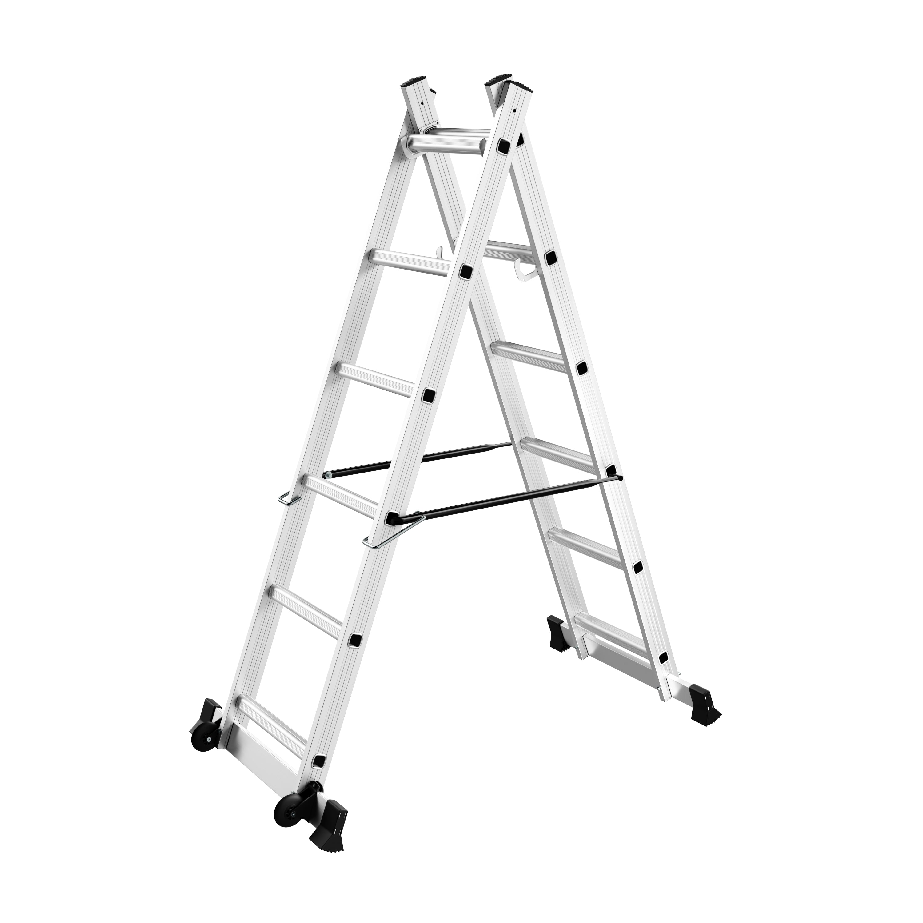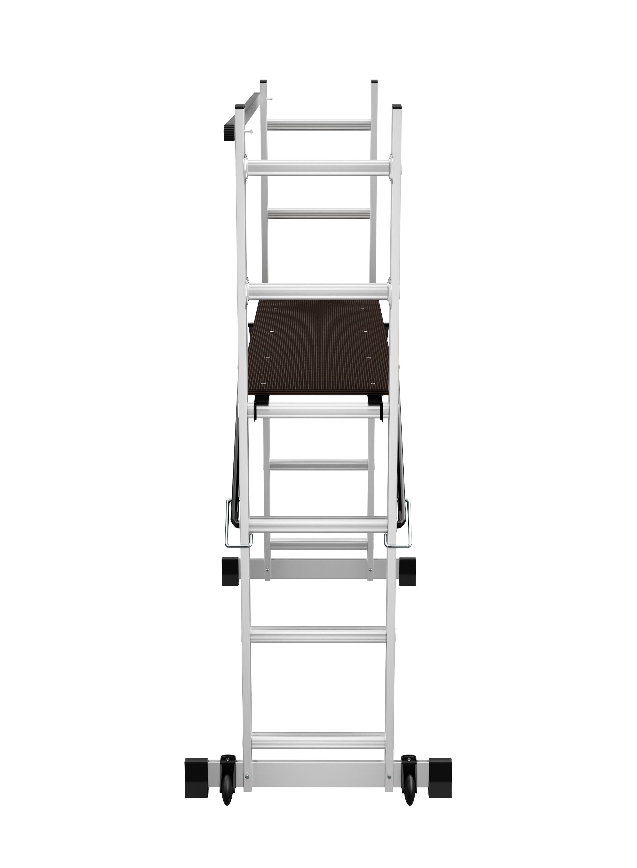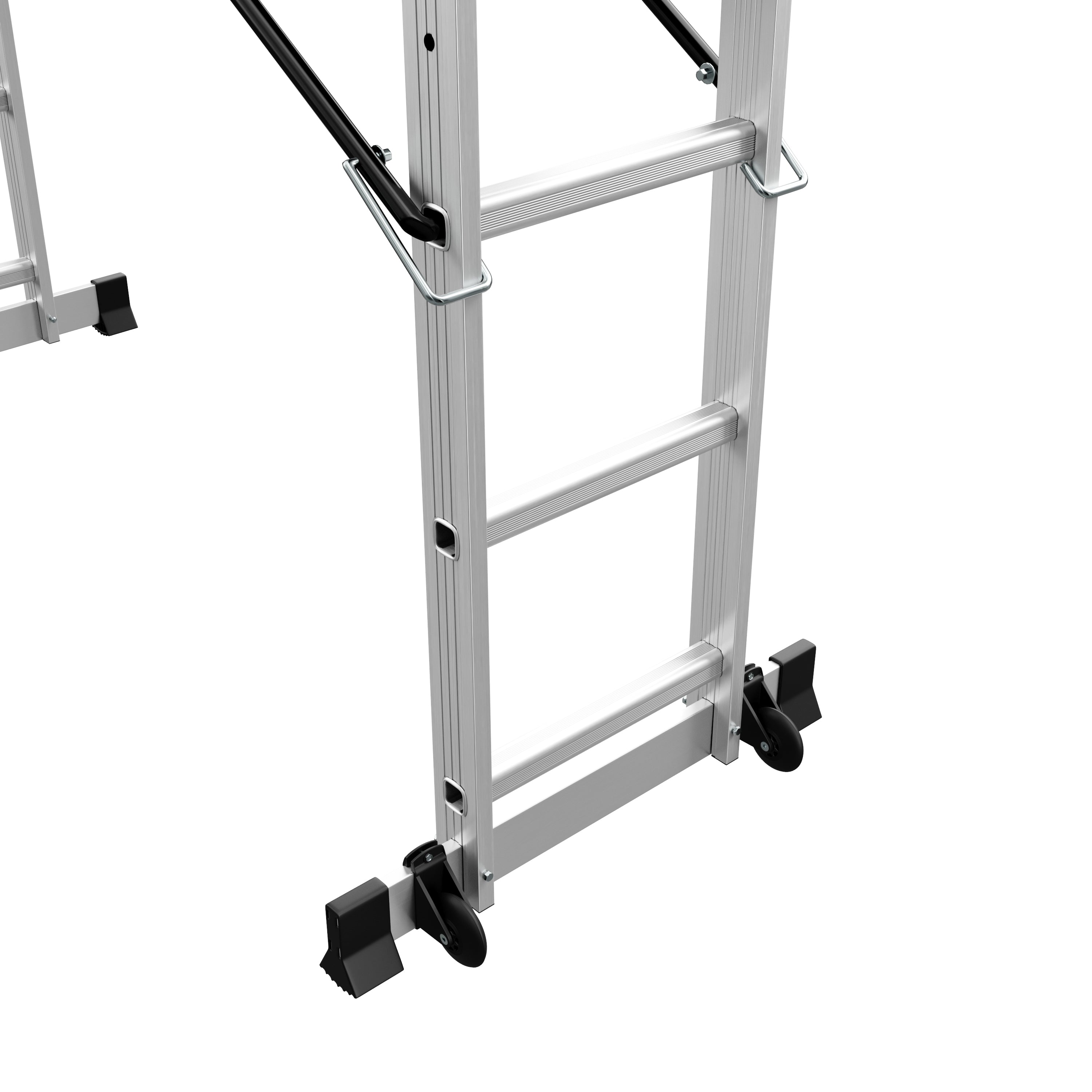 Questo ponteggio in alluminio è un vero tuttofare. La scala multiuso può essere utilizzata come ponteggio, ponteggio a scale, scala a pioli o scala a prolunga. La sua elevata stabilità e la piattaforma di lavoro con ringhiera garantiscono sicurezza e condizioni di lavoro confortevoli. La piattaforma è ideale per lavori di verniciatura e altri lavori pesanti che richiedono elevata stabilità. Il ponteggio a scale è facile e veloce da montare e può essere trasportato e riposto in modo salvaspazio. Scegli questo robusto e versatile aiutante per il tuo cantiere!