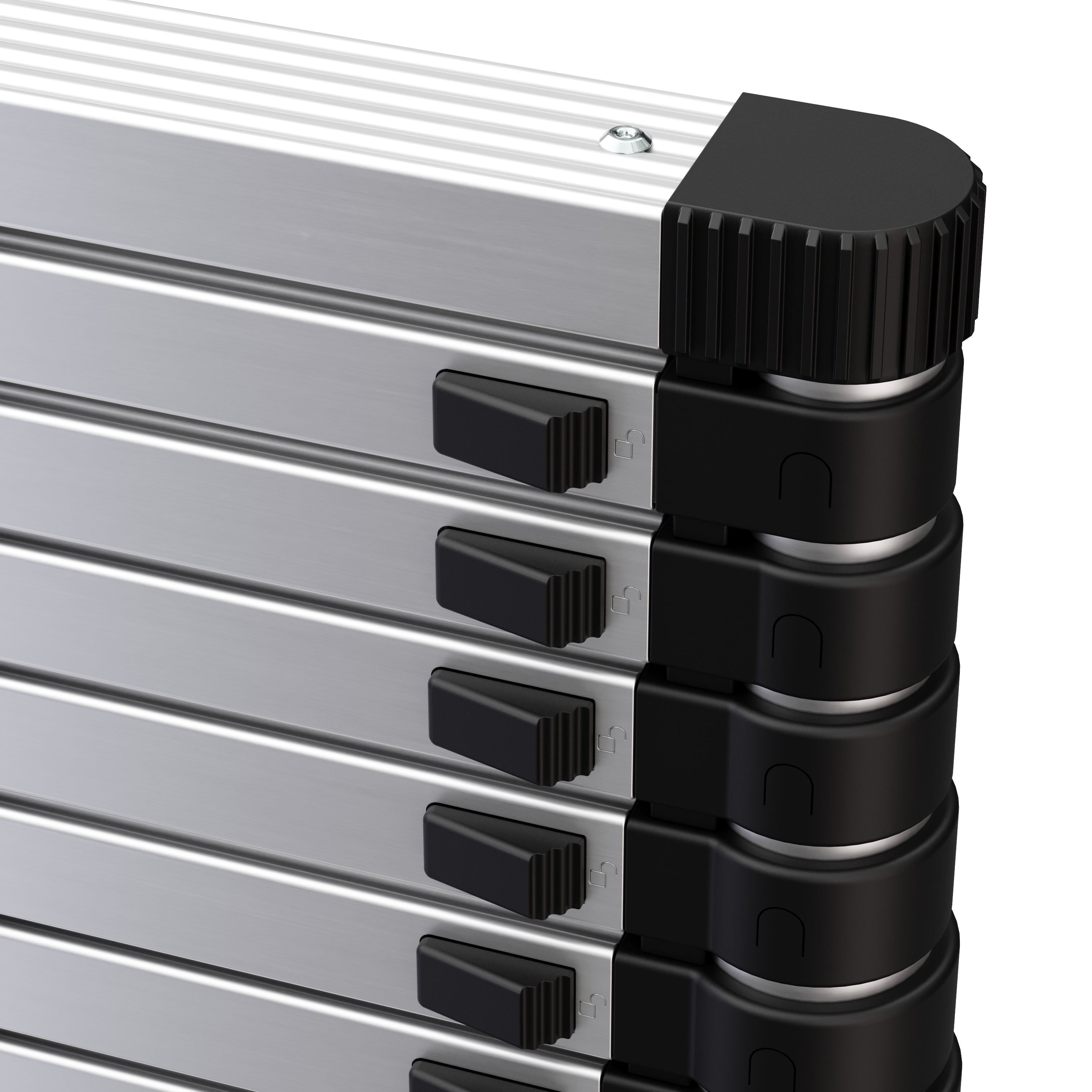 - Robuste Aluminiumkonstruktion mit rutschfesten Kunststoff-Endkappen