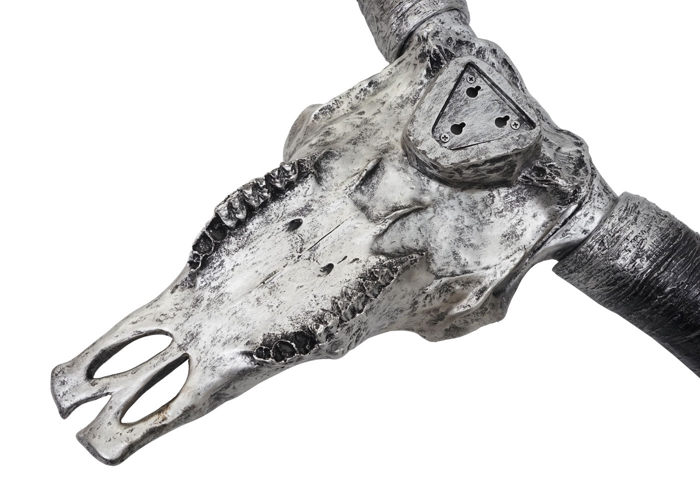 - Neben der hohen Bruchfestigkeit zeichnet sich dieser Schädel durch die detailreiche Verarbeitung aus. Die Hörner werden eingesteckt und anhand von drei Schrauben an der Rückseite des Schädels kann dieses Schmuckstück an Ihrer Wand befestigt werden.