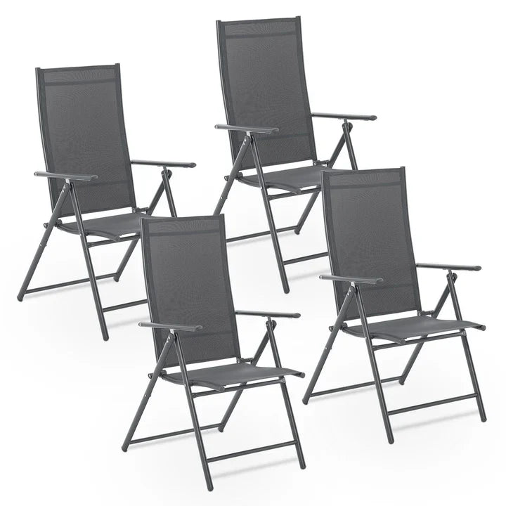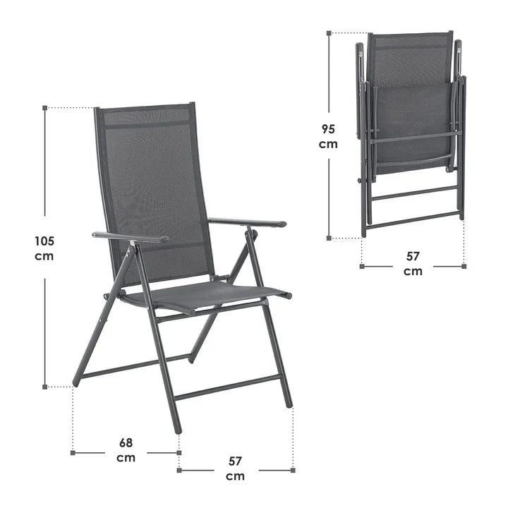 Genießen Sie entspannte Stunden im Freien mit dem Gartenstuhl Calena 4er Set in elegantem Anthrazit. Diese vielseitigen Klappstühle vereinen Funktionalität und Komfort dank ihrer 7-fach verstellbaren Rückenlehne und dem hochwertigen, atmungsaktiven Textilgewebe. Ob als stilvolle Gartenstühle oder praktische, faltbare Campingstühle, die einfache Klappfunktion ermöglicht einen mühelosen Transport. Ideal ergänzbar mit einem Gartenstuhl Calena 4er Set in Anthrazit.
