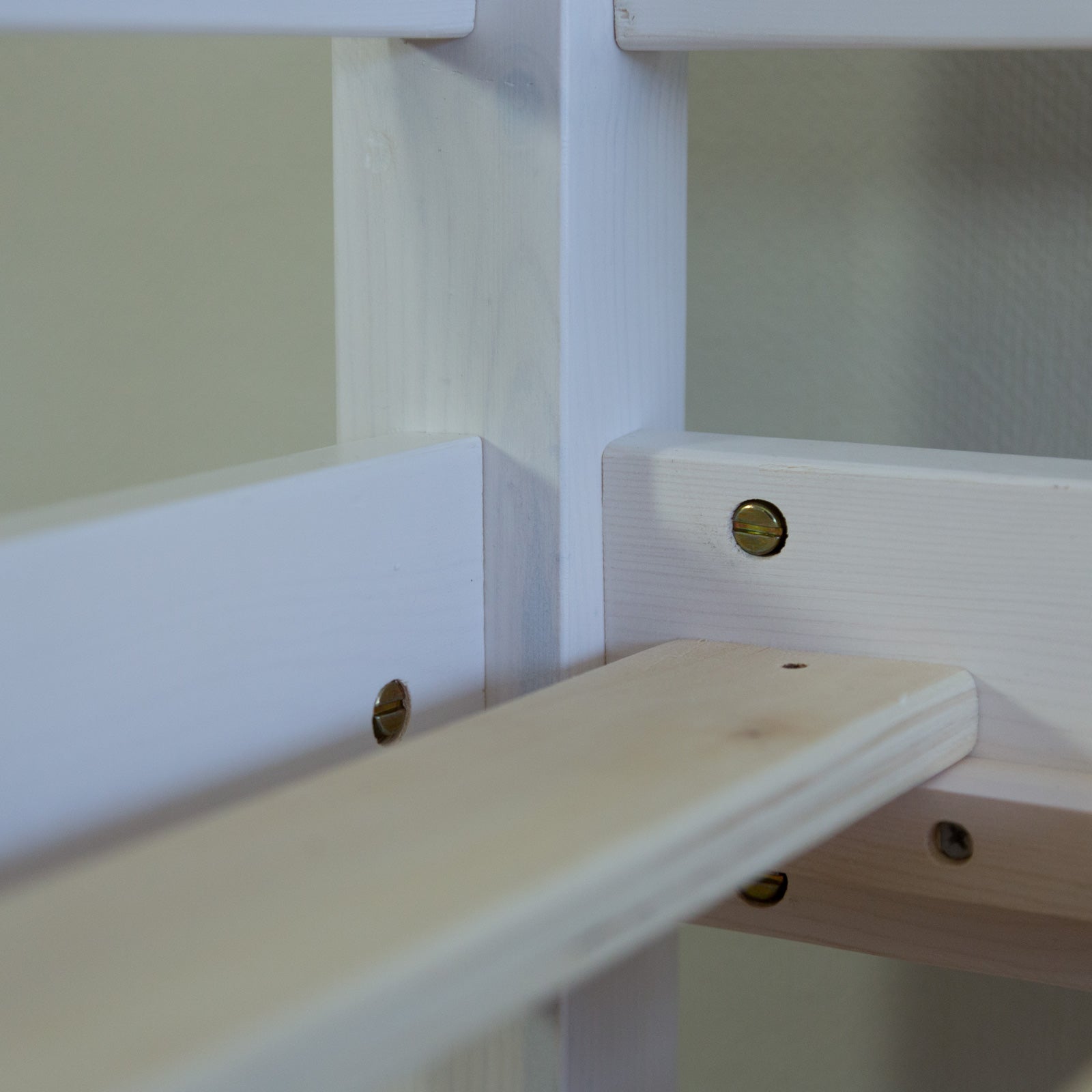 Mit diesem Hochbett bringst Du nicht nur Ordnung ins Kinderzimmer, sondern auch ein Gefühl von Geborgenheit und Leichtigkeit. Die großzügige Liegefläche von 90x200 cm bietet Deinem Kind viel Platz zum Schlafen, Träumen und Ausruhen – ganz gleich, ob am Abend nach einem langen Tag oder am Wochenende beim Lesen und Entspannen.