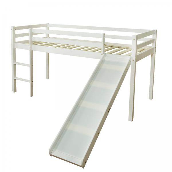 Hochbett Kinderbett 90x200 Weiss Rutsche Turm Spielbett Jugendbett Holz