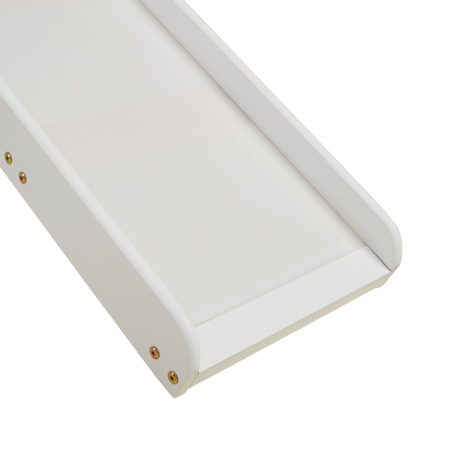 Dieses schlichte Hochbett mit Rutsche baut auf unserem Basishochbett (1433) auf. In anderen Ausführungen können zusätzliche Komponenten gewählt werden. Dafür stehen Vorhänge, Tunnel und Türme in verschiedenen Designs zur Verfügung. Je nach Raumkonstellation können Leiter und Rutsche flexibel links oder rechts montiert werden.