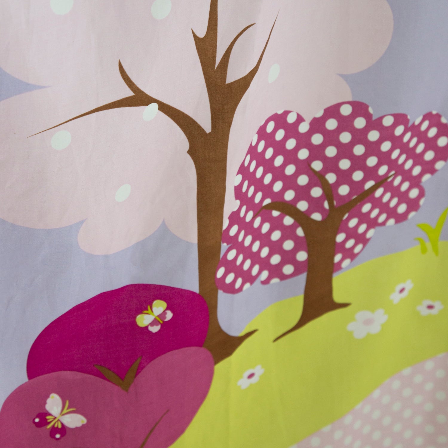 - Stoff: lila mit Schloss Motiv, Material: 100% Baumwolle