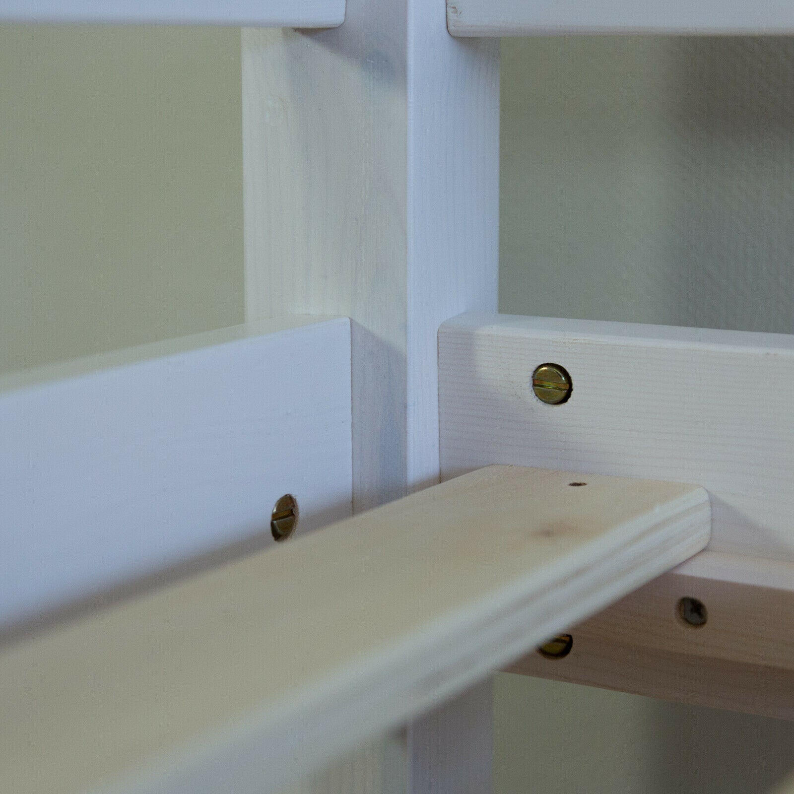 Hochbetten bieten nicht nur mehr Platz im Kinderzimmer, sondern sind oft auch Teil von kleinen Abenteuern und Fantasiespielen für Kinder. Mit einer Liegefläche von 90 x 200 cm besteht unter dem stabilen Bett mit einer Höhe von 75 cm viel Stauraum für Sitzgruppen oder Spielzeug. Nach einem aufregenden Tag kann Ihr Kind in diesem Kinderbett erholt und ruhig schlafen.