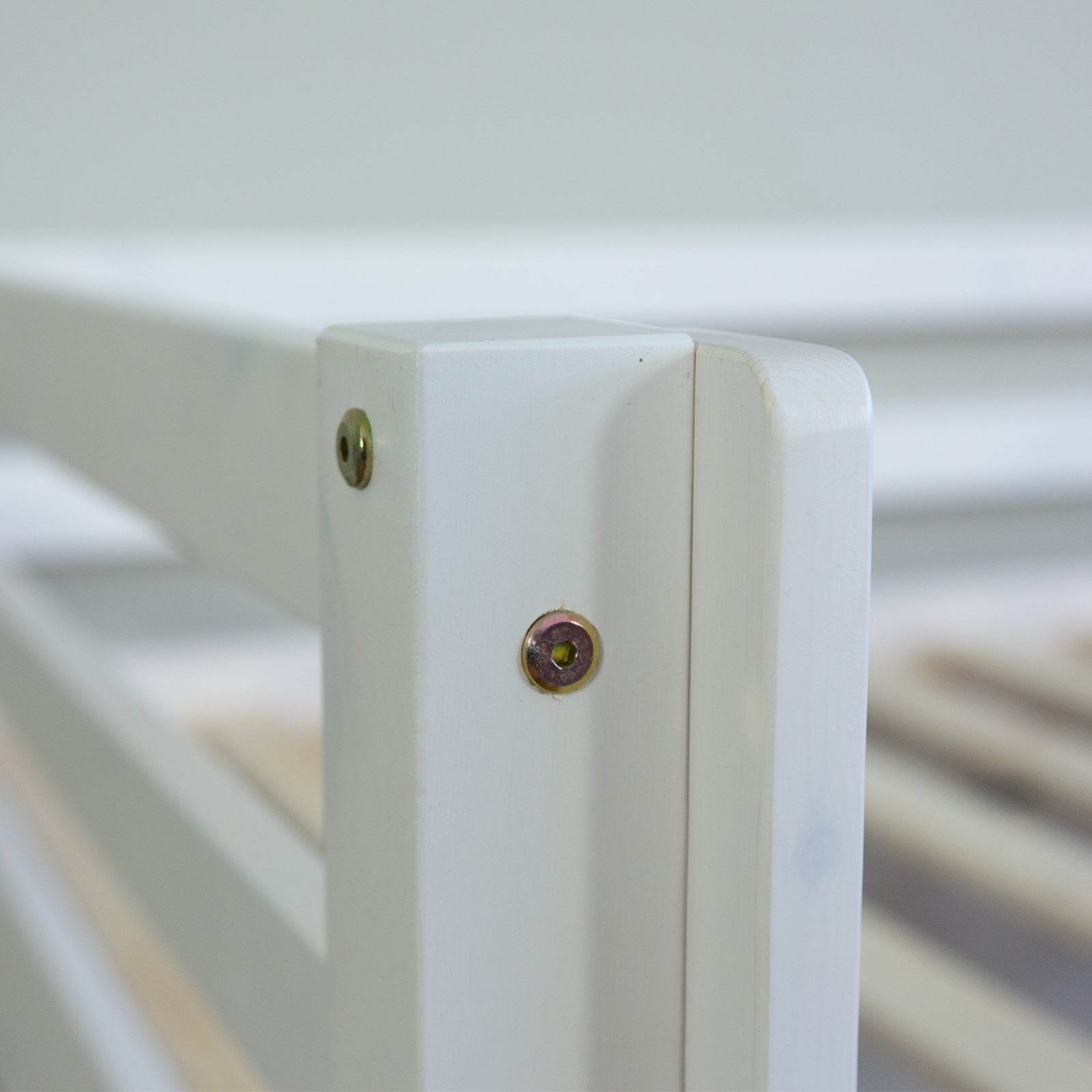 Dieses elegante und praktische Hochbett mit den Maßen 90x200 cm bringt eine wunderbare Atmosphäre ins Kinderzimmer. In modernem Weiß gestaltet, fügt es sich harmonisch in jede Einrichtung ein und bietet nicht nur einen gemütlichen Schlafplatz, sondern durch eine Höhe von 75 cm auch ausreichend Raum darunter für kreative Aktivitäten, Lernen oder einfach zum Entspannen. Gefertigt aus hochwertigem Massivholz, überzeugt das Bett durch seine Stabilität und Langlebigkeit. Ein Rollrost ist im Lieferumfang enthalten.