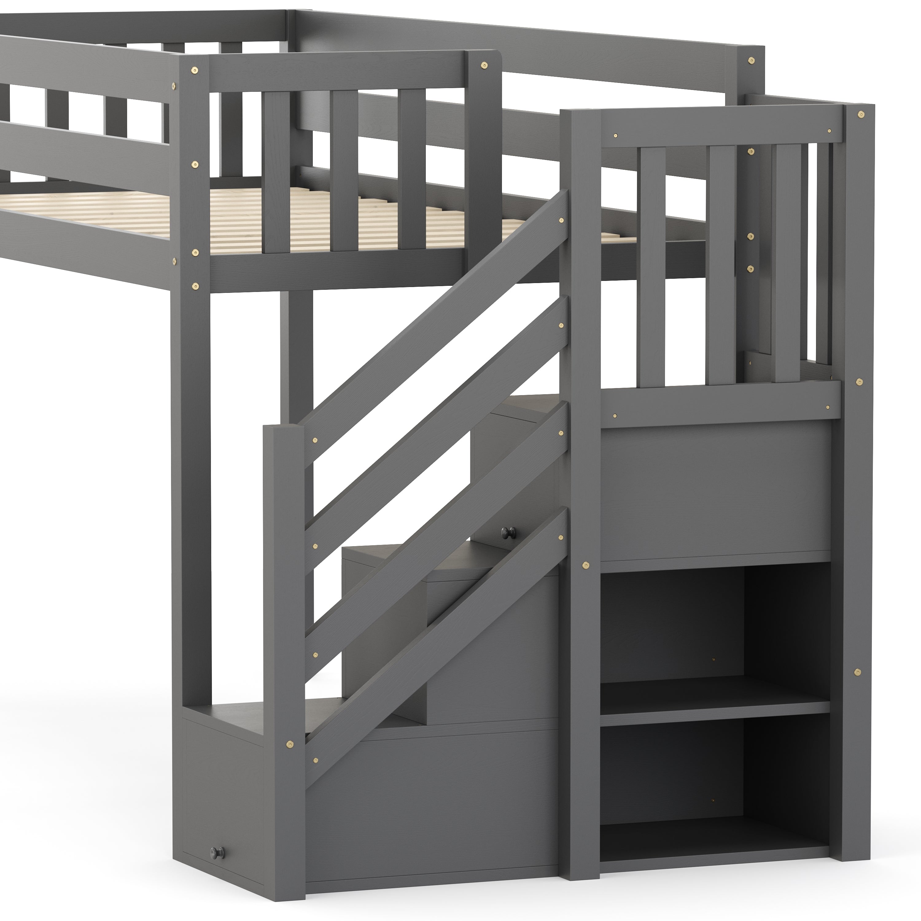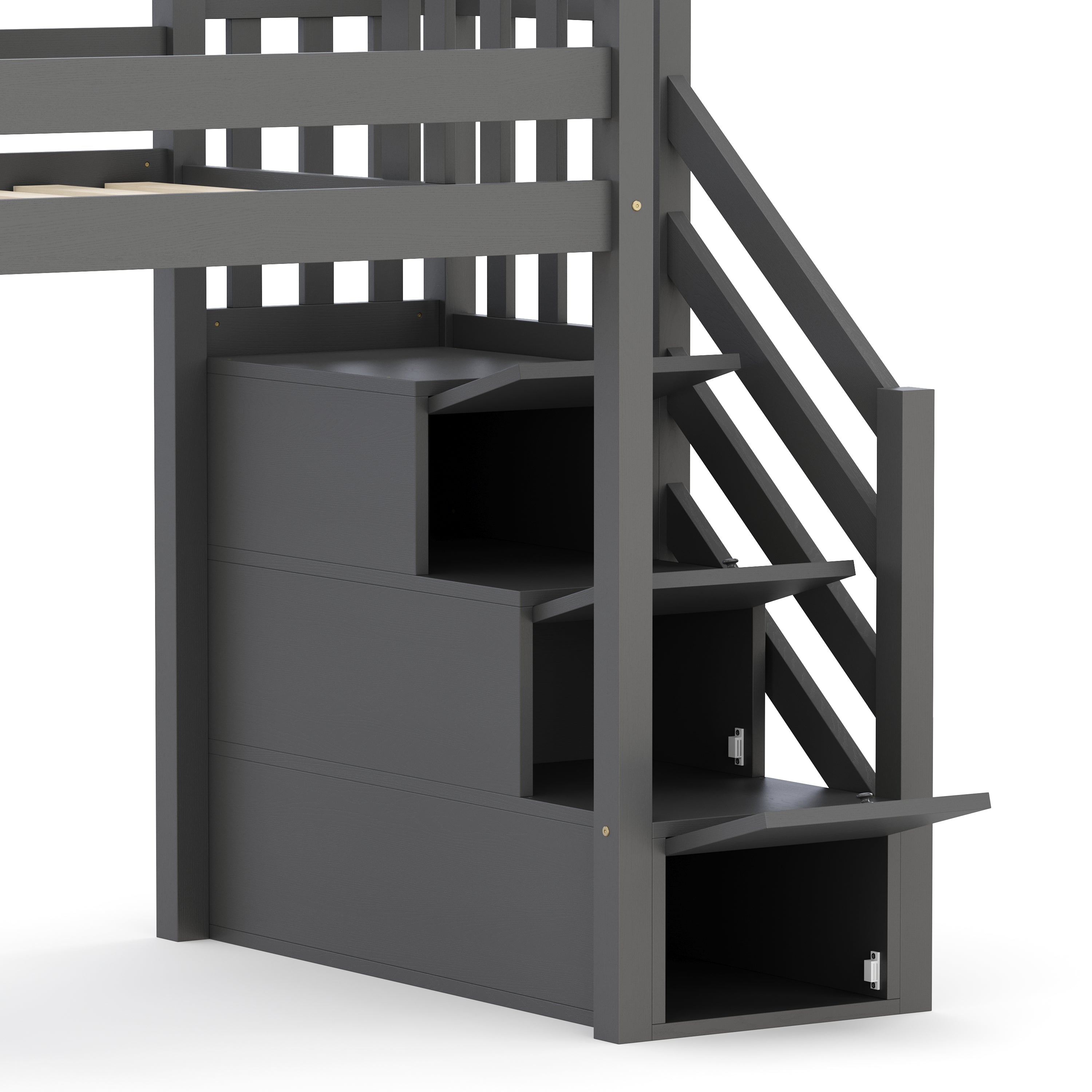Schaffe mehr Platz im Kinderzimmer mit diesem praktischen Hochbett ONEIRO aus robustem Kiefernholz. Die stabile Treppe ermöglicht deinem Kind einen sicheren Aufstieg, während der seitliche Rausfallschutz für unbesorgte Nächte sorgt. Der grosszügige Bereich unter der Liegefläche bietet Raum zum Spielen, Lernen oder für zusätzliche Kindermöbel, während die integrierten Staufächer im Treppenbereich für zusätzlichen Stauraum sorgen. Bestelle jetzt dieses moderne graue Kinderbett und verwandle das Kinderzimmer in eine Wohlfühloase!
