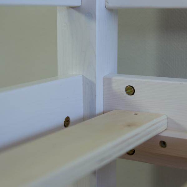 Dieses schlichte, stabile, weiße Hochbett mit Rutsche baut auf unserem Basishochbett auf. In anderen Ausführungen können zusätzlich verschiedenen Zusatzfeatures ausgewählt werden. Je nach Raumkonstellation können Leiter und Rutsche links oder rechts montiert werden.
