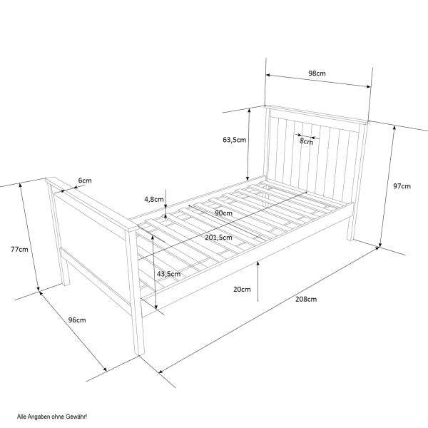 - Bett Außenmaß (B x T): 98 x 208 cm