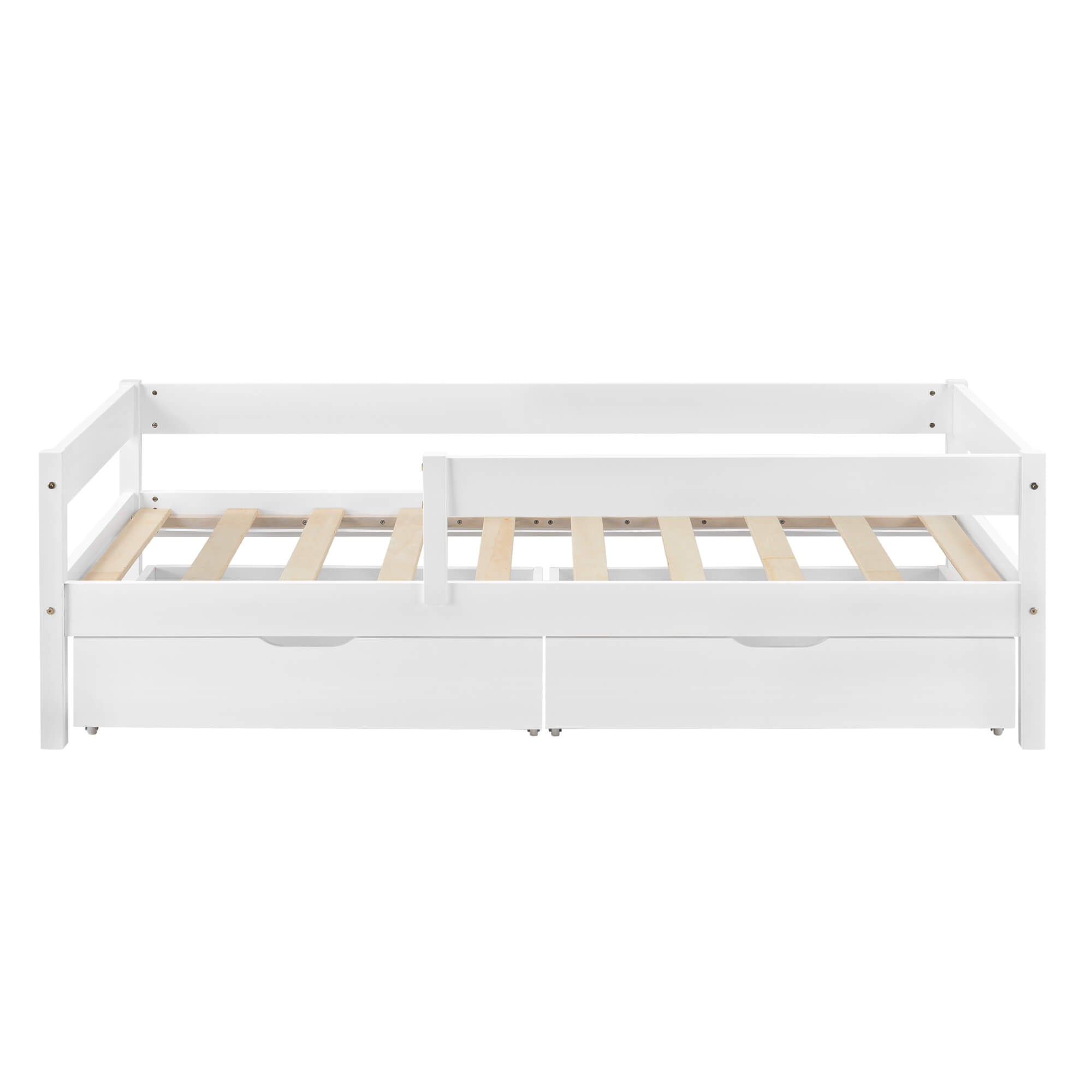 - Mit Rausfallschutz und Stauraum durch 2 Schubladen