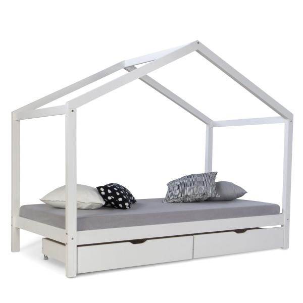 Die zwei Bettkästen bieten genügend Stauraum für Bettwäsche, Spielzeug und Kuscheltiere. Durch die besondere Bauweise des Hausbettes ist auch für Eltern genügend Kopffreiheit gegeben, wenn Sie Ihren Schützling zu Bett bringen. Die stabile und sichere Konstruktion sowie die pflegeleichte und hochwertige Oberfläche das Holzes machen das Bett besonders kinderfreundlich. Einfach ein modernes Kinderbett mit großer Wirkung!