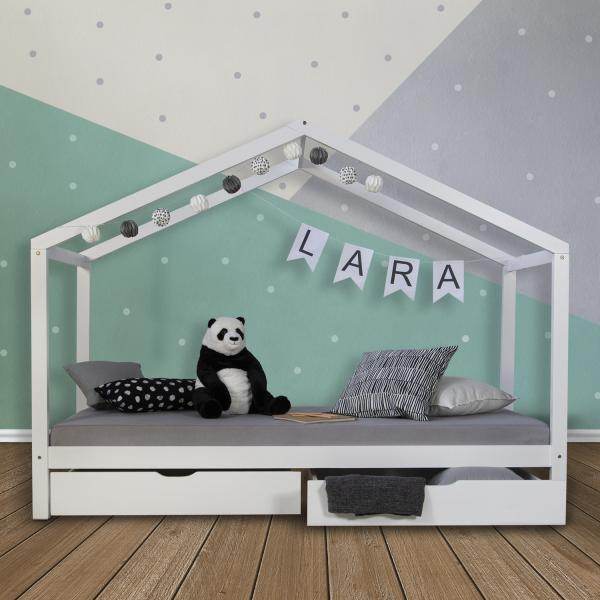In unserem Kinderbett im Hausdesign wird Ihr Kind viele tolle Stunden voller Abenteuer und Spielen erleben. Eine gemütliche Oase im Abenteuerbett schafft viel Raum für Kreativität und Spiel. Die massiven Holzlatten und Pfosten sind in Hausform gefertigt und bieten viel Raum zum Eindekorieren und individuellem Gestalten. Gestalten Sie das Bett zum Beispiel individuell mit einer Lichterkette, Wimpeln, Kuscheltieren oder auch einen Traumfänger und schaffen Sie für Ihr Kind einen liebevollen Schlafplatz und Spielhöhle.