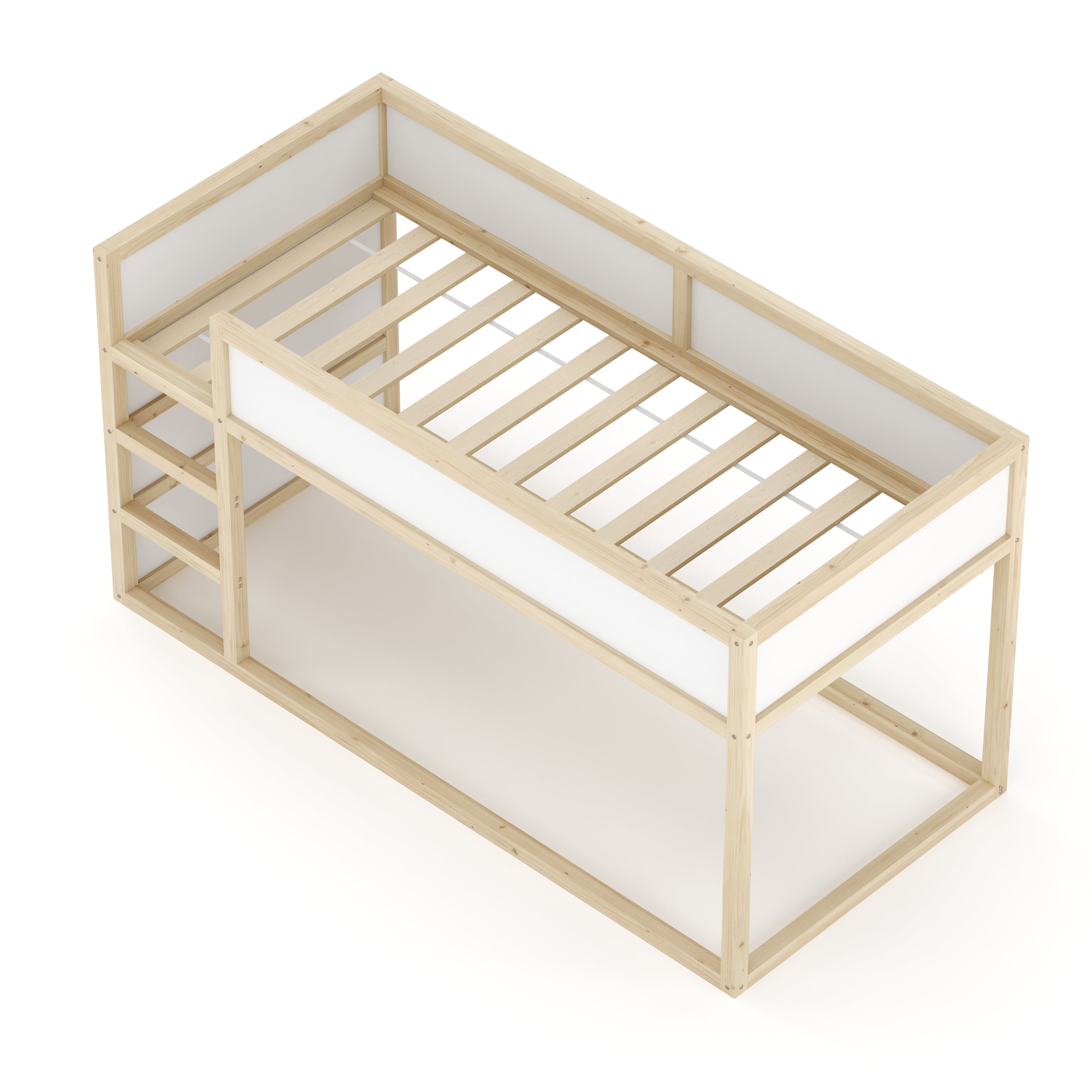 Das hochwertige Kinderbett BOSWIL aus robuster Kiefernholz vereint Gemütlichkeit, Funktionalität und Spielspass. Dank durchdachtem Design wächst es mit deinem Kind mit: Anfangs dient es als sicheres, bodennahes Kinderbett – ideal für die ersten Lebensjahre. Später verwandelt es sich im Handumdrehen in ein praktisches Hochbett. So entsteht unter dem Bett eine gemütliche, geschützte Spielecke – perfekt zum Verstecken, Lesen oder Spielen. Die integrierte Treppe sorgt dabei für einen sicheren und bequemen Aufstieg in den Schlafbereich. Sichere dir jetzt dieses clevere 2-in-1-Kinderbett für traumhafte Nächte und fantasievolle Abenteuer!
