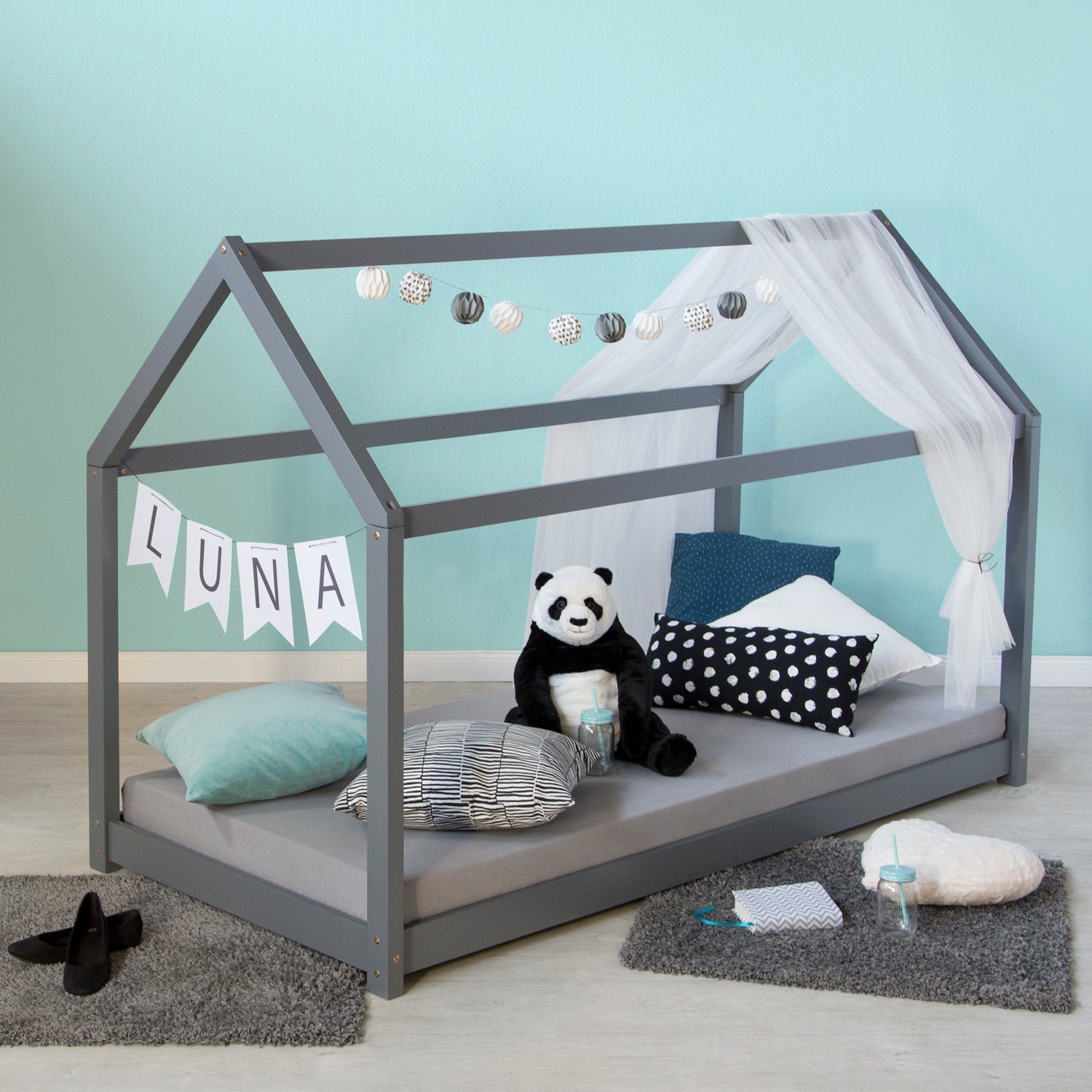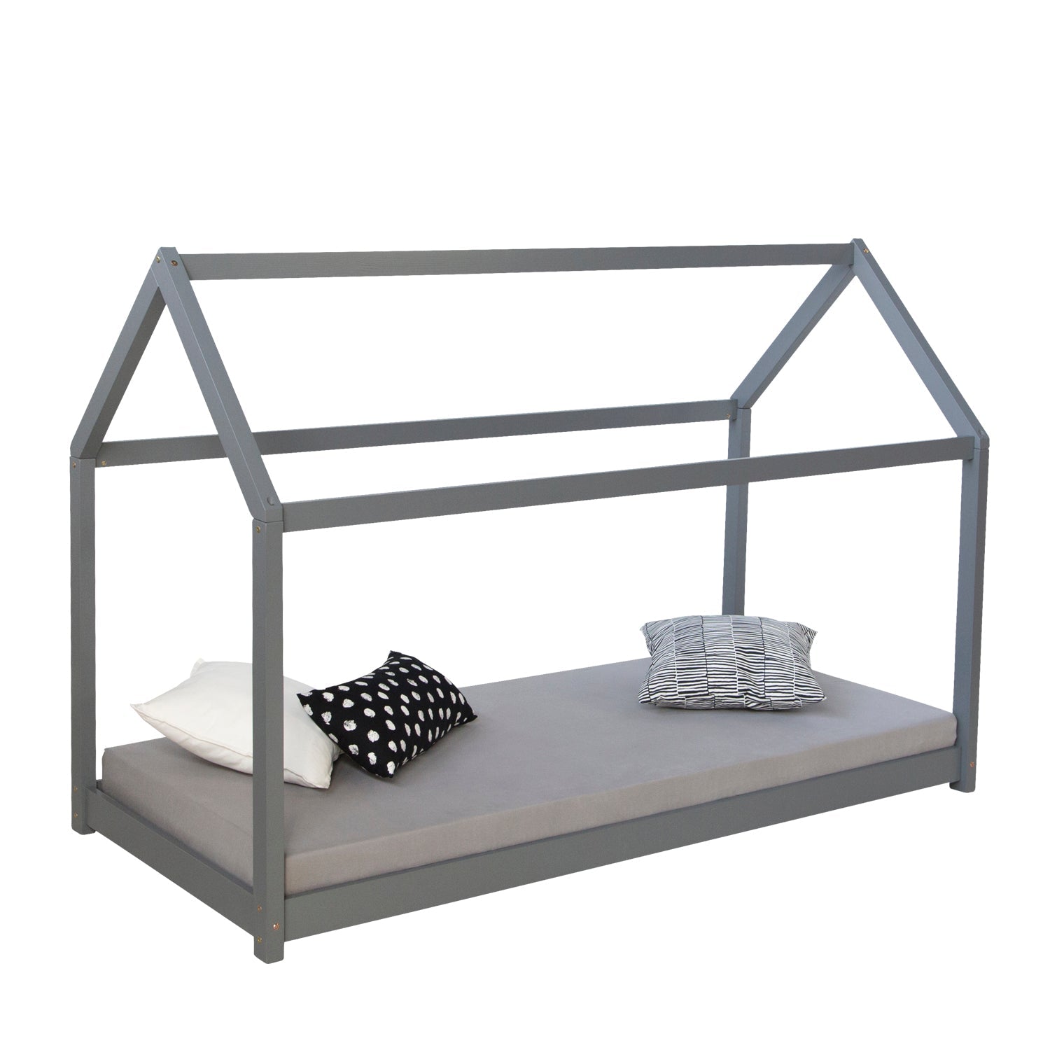 Dieses moderne Hausbett in elegantem Grau bietet eine stilvolle und funktionale Schlaflösung für Kinder- und Jugendzimmer. Gefertigt aus massivem Holz, überzeugt das Bett durch seine robuste Bauweise und langlebige Qualität. Die offene Hausform sorgt für eine schlichte, aber ansprechende Optik, die sich nahtlos in verschiedenste Einrichtungsstile einfügt.