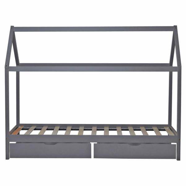 Kinderbett Kinderhaus Spielbett Hausbett 90x200 cm Grau mit Bettkasten