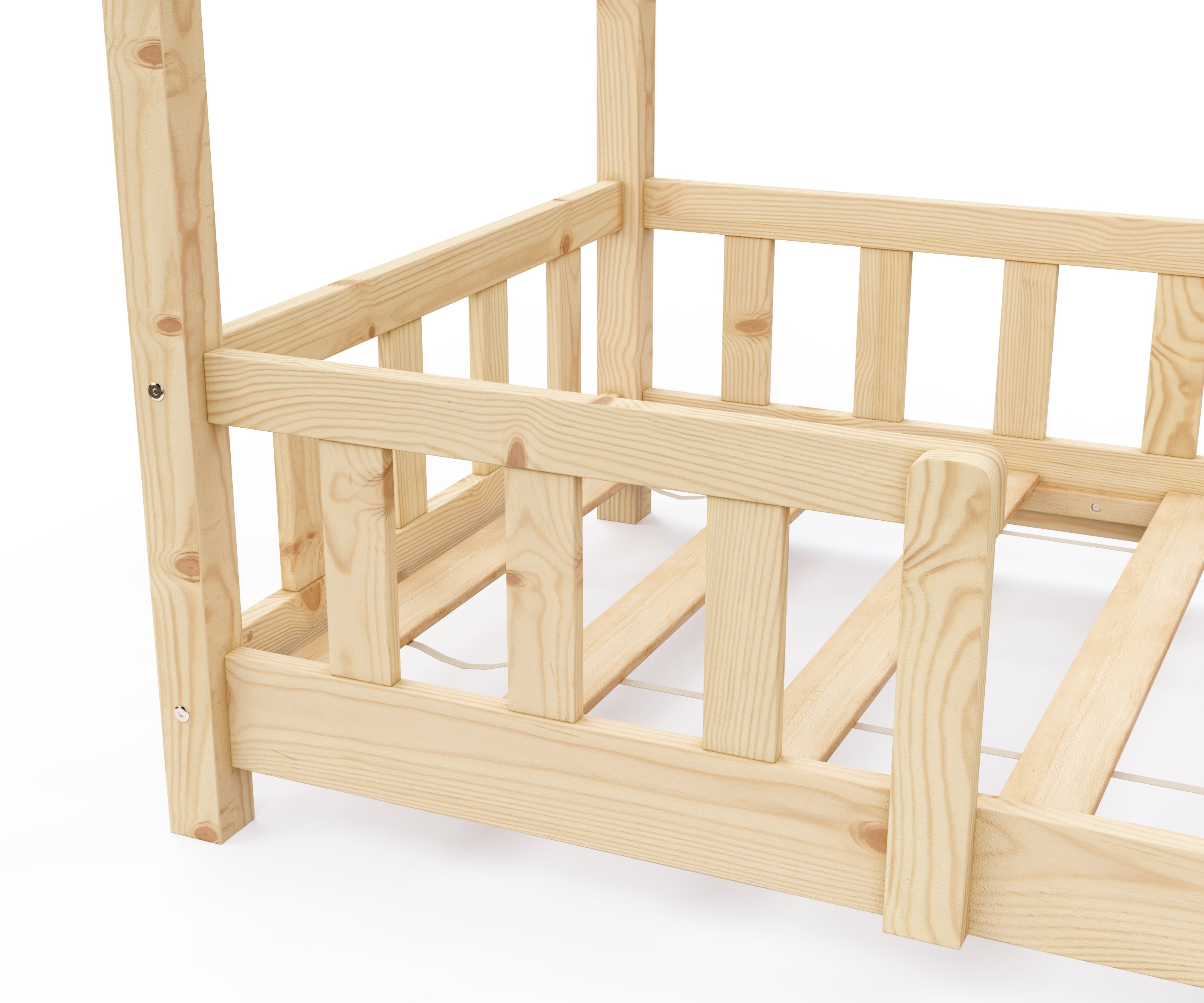 Möchtest du deinem Kind einen ruhigen und spannenden Rückzugsort bieten? Das naturfarbene Kinderbett MAISON ist die perfekte Wahl. Mit seinem tollen Hausdesign und der warmen Holzfarbe strahlt es Gemütlichkeit und Geborgenheit aus. Hergestellt aus robustem Kiefernholz und ausgestattet mit einem Lattenrost, garantiert es nicht nur einen erholsamen Schlaf, sondern auch Sicherheit, dank der niedrigen Bettkante mit Rausfallschutz. Dekoriere es mit Lampions, Lichterketten und Vorhängen und erschaffe eine Ritterburg oder ein Traumschloss für deinen Sprössling!