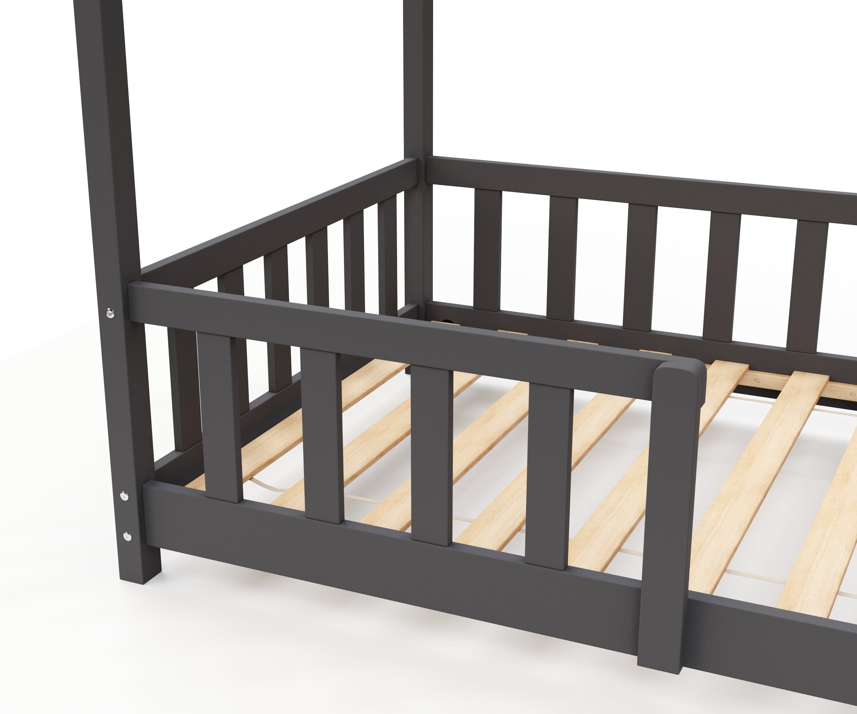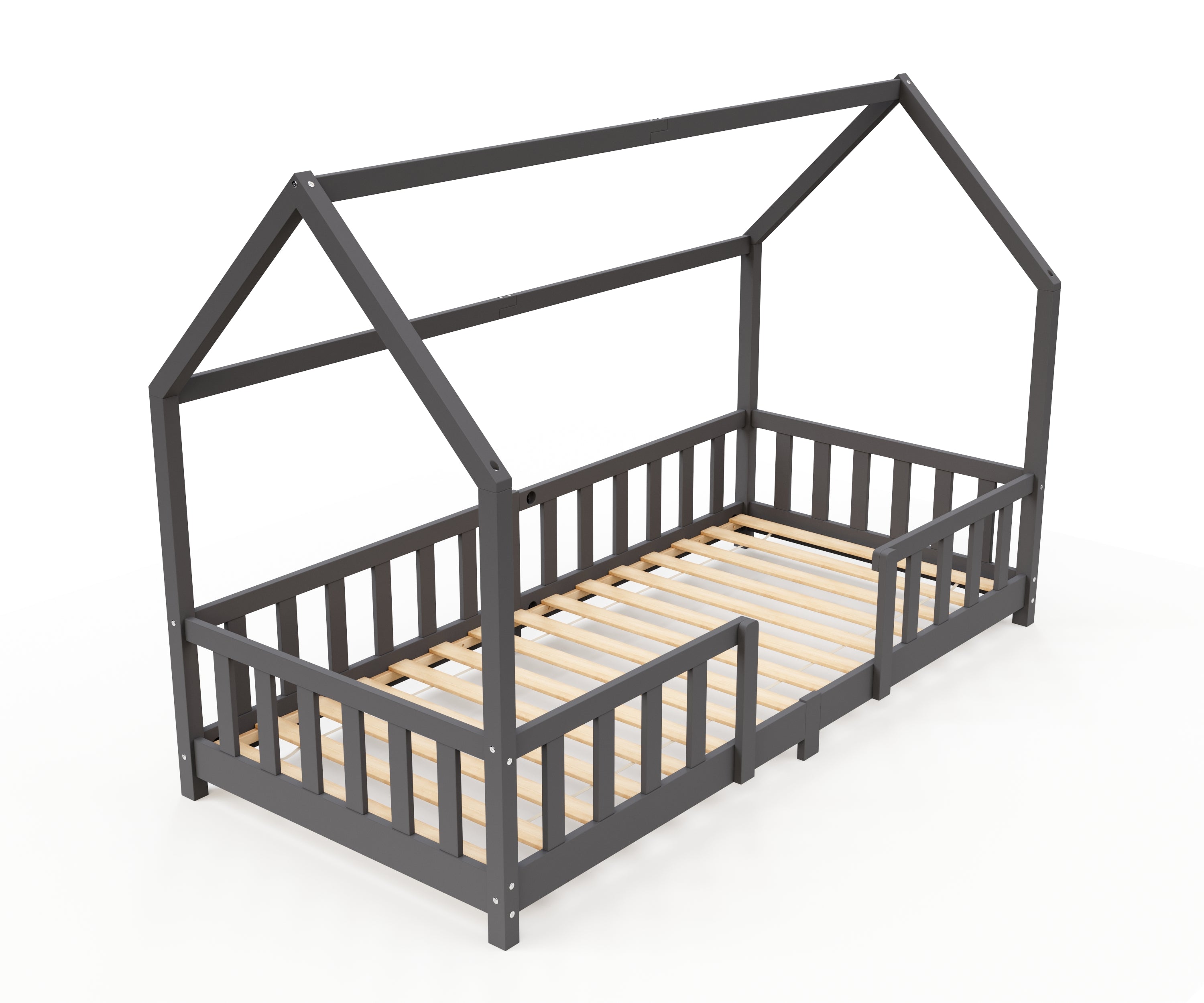 - Originelles anthrazites Kinderbett in Form eines Hauses