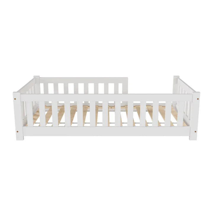 Entdecken Sie das stilvolle Kinderbett Naya 80x160 cm mit Lattenrost und Rausfallschutz! Als Bodenbett für Mädchen und Jungen bietet es einen sicheren und gemütlichen Schlafplatz, wobei das stabile Bettgestell aus Holz für Langlebigkeit sorgt. Das bodentiefe, kindgerechte Design zaubert ein liebevolles Ambiente ins Kinderzimmer und fördert die kindliche Entwicklung. Schaffen Sie einen Ort zum Wohlfühlen und ermöglichen Sie Ihrem Kind erholsame Nächte.