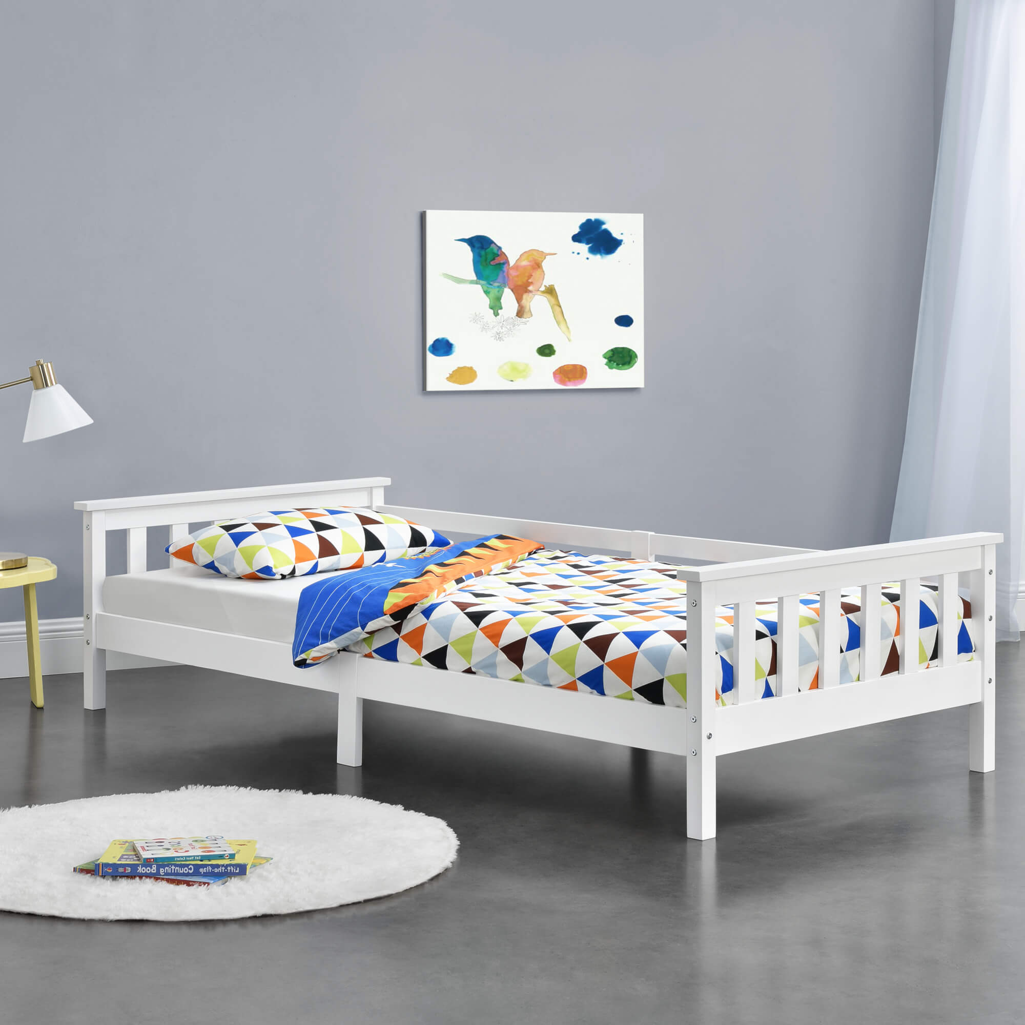 Das stabile Kinderbett aus Kiefernholz verschönert durch seine Optik jedes Kinderzimmer und bietet einen angenehmen Schlafplatz.