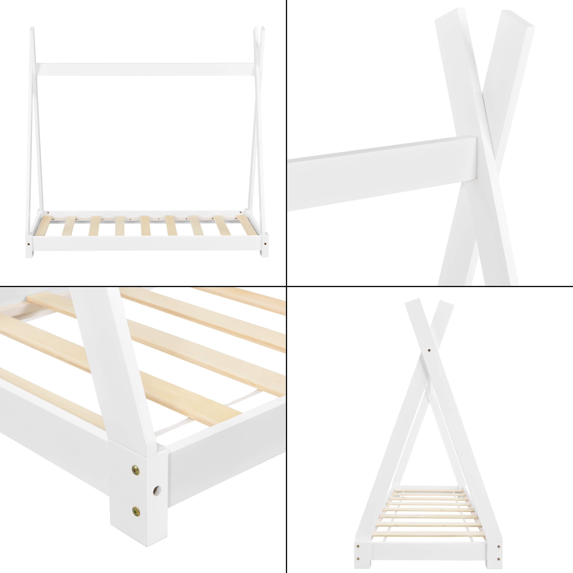 Das stabile Kinderbett aus Kiefernholz verschönert durch seine Optik jedes Kinderzimmer und bietet einen angenehmen Schlafplatz.