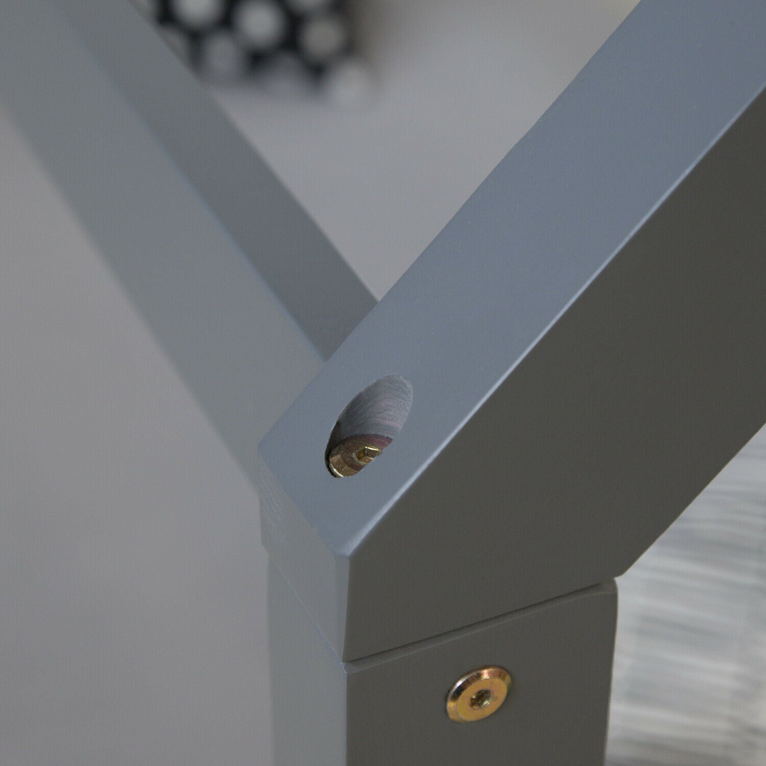 Ein einfaches Kinderbett mit großer Wirkung. Aus massiven Holzlatten und Pfosten in Form eines Hauses wird das Bett zu einer Spielhöhle, Kuschel- und Schlafplatz. Durch die stabile und sichere Konstruktion, Bodenhöhe der Liegefläche sowie die pflegeleichte und hochwertige Oberfläche des Holzes ist das Hausbett besonders kinderfreundlich. Das Kinderhausbett wird mit detaillierter Aufbauanleitung geliefert und ist leicht zu montieren. Matratze, Bettwäsche und Kissen sind nicht im Lieferumfang enthalten.