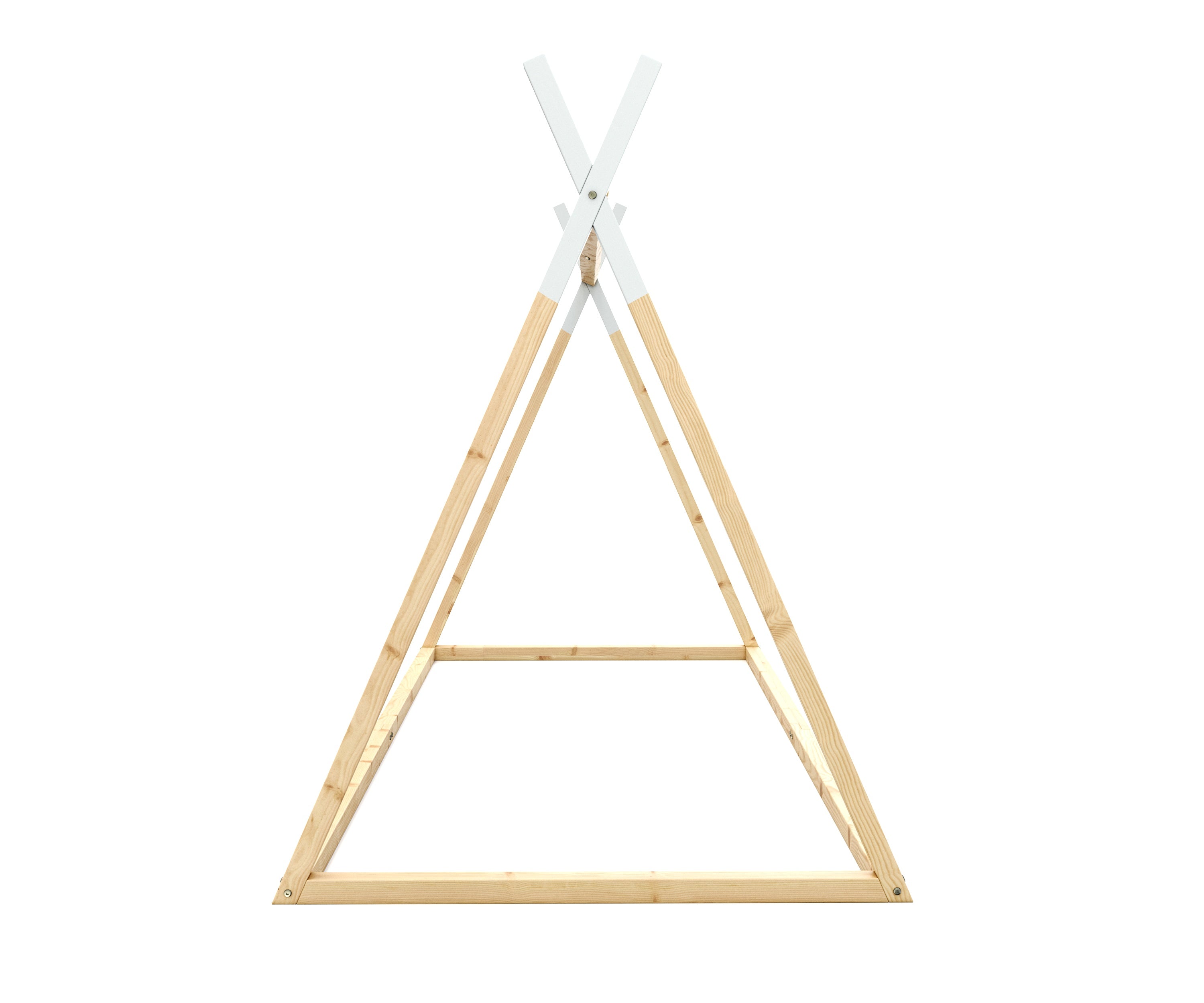 Das Spielbett TIPI lässt Kinderherzen höher schlagen. Das Gestell kann mit selbstgebastelten Girlanden oder Figuren behängt werden. Mit einem grossen Tuch wird daraus im Nu ein kuscheliges Indianertipi. Der Bettrahmen ist für eine Matratze von 90 x 200 cm geeignet. Durch die niedrige Bettkante werden Stürze vermieden. Egal ob als Spielwiese oder als kreatives Schlafgemach – die Kinder werden vom TIPI begeistert sein!