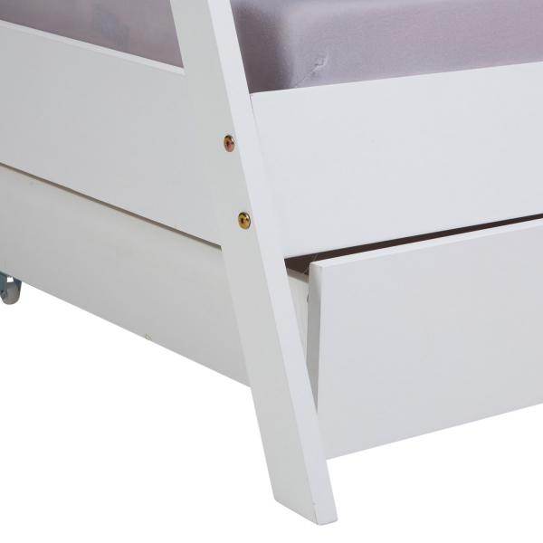 Kinderbett TIPI 90x200 mit 2 Bettkästen Weiss Holzbett Indianer Bett Hausbett Spielbett