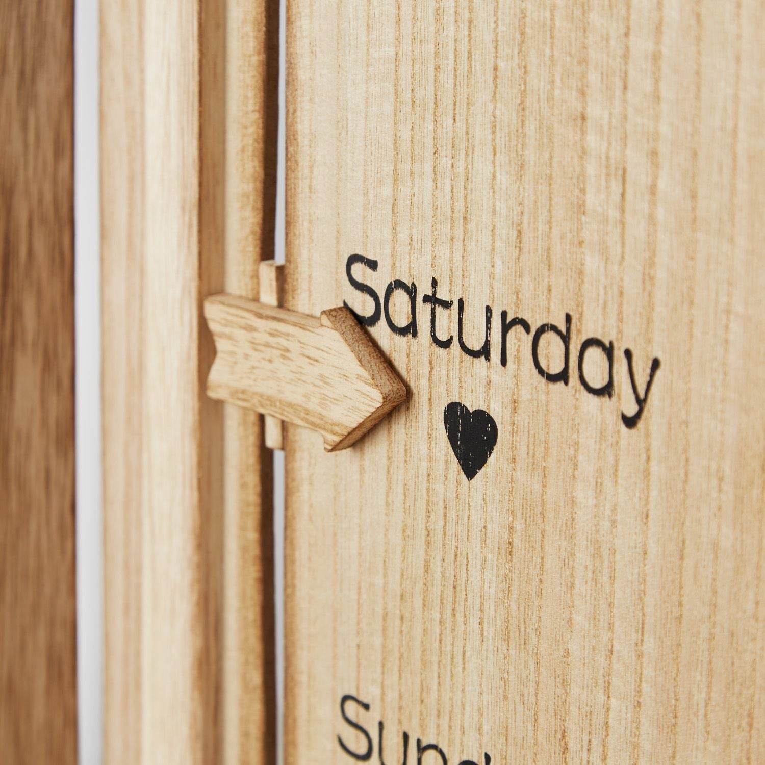Sie haben den Überblick über Ihre Termine und To-Dos verloren? Unser praktischer Raumteiler erweist sich als wahres Organisationstalent und hilft Ihnen Ordnung ins Chaos zu bringen. Der naturfarbene Paravent verfügt über mehrere Tafel Elemente, auf denen sich Ihre täglichen und wöchentlichen Aufgaben mit Kreide notieren lassen. Während ein verstellbarer Pfeil den aktuellen Wochentag anzeigt, verfügt die große Tafel in der Mitte über ein Klemmbrett an dem sich Zettel mit wichtigen Notizen befestigen lassen.