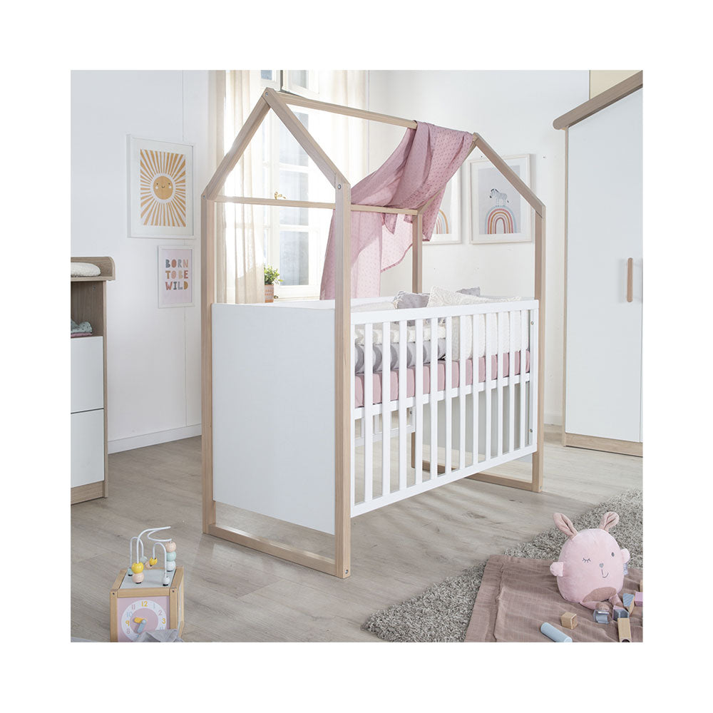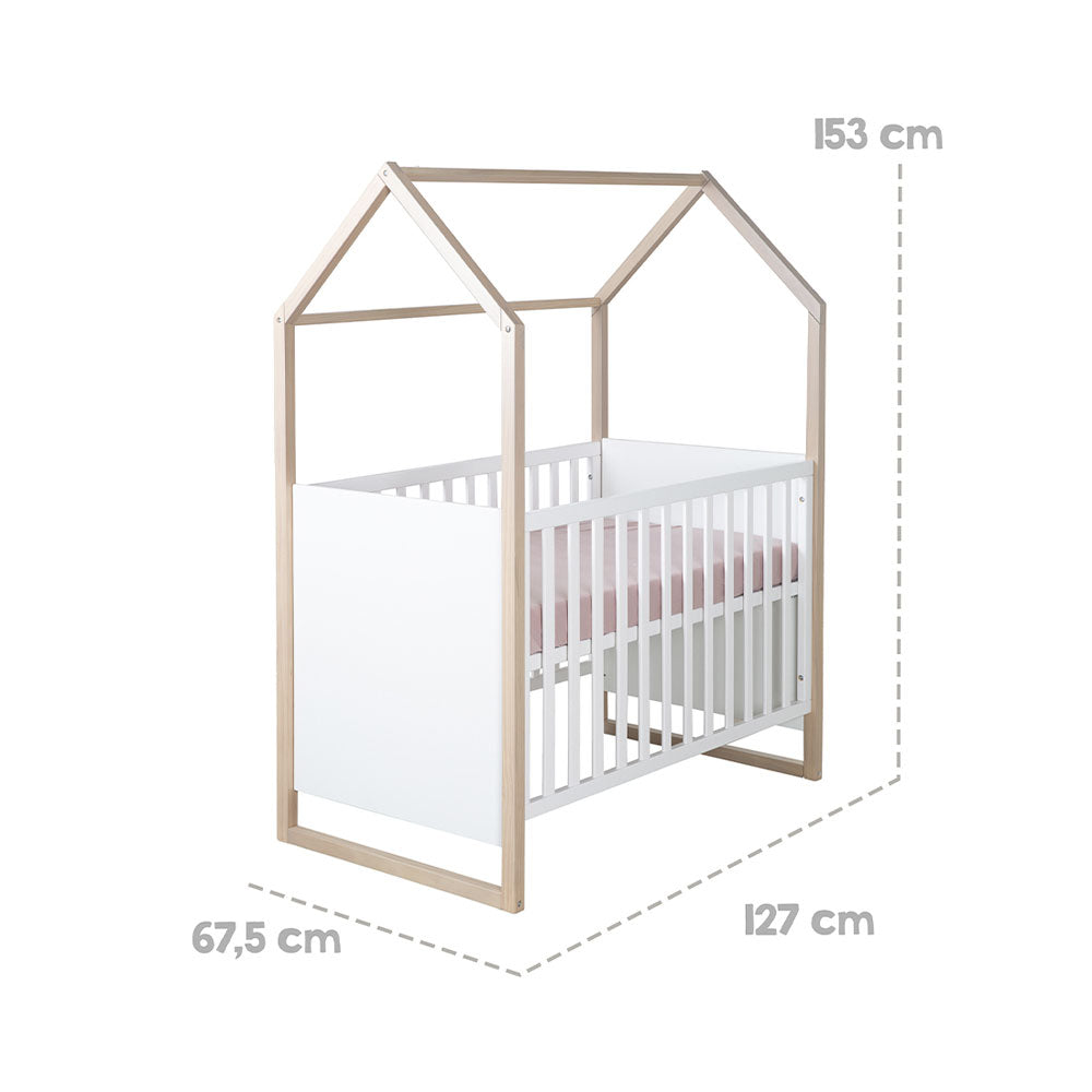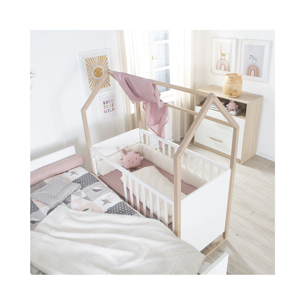 Das roba Hausbett mit Beistellfunktion ist die perfekte Wahl für Eltern, die ein modernes und funktionales Bett suchen. Das Bett besticht durch seine einzigartige Hausoptik und ist aus massivem Buchenholz gefertigt. Das elegante Weiss des Betthauptes setzt einen schönen Kontrast zur hellen Buche. Das 3-fach höhenverstellbare Bett passt sich optimal der Grösse Ihres Kindes an. Der sichere Einstieg wird durch herausnehmbare Schlupfstäbe gewährleistet. Es ist nach der Sicherheitsnorm EN 716-1:2017 entwickelt und bietet zahlreiche Dekorationsmöglichkeiten. Ein hochwertiges, funktionales Bett, das zum Hingucker im Kinderzimmer wird.
