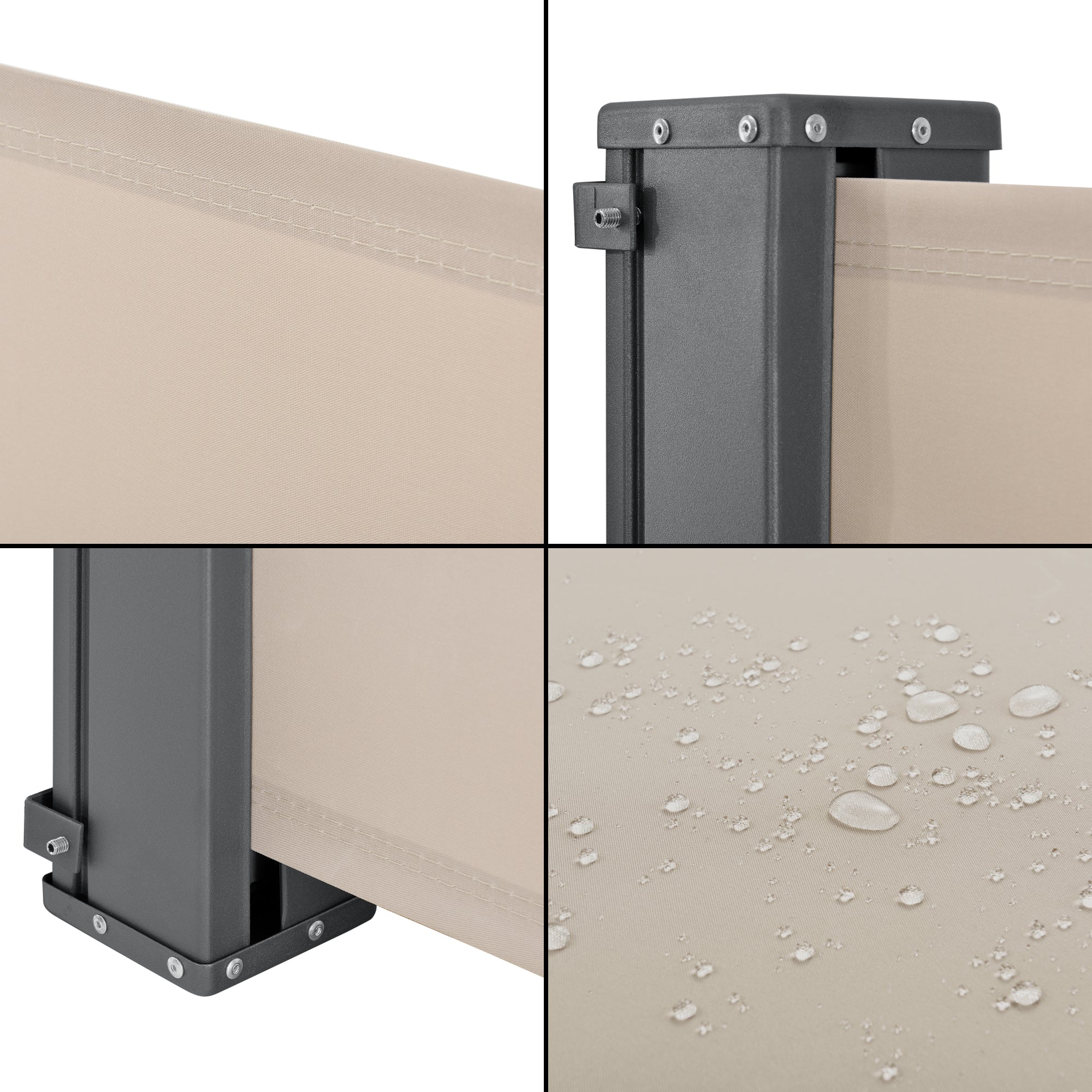 Unsere Seitenmarkise bietet Ihnen perfekten Schutz vor neugierigen Blicken von Passanten oder Nachbarn und kann Dank der mitgelieferten Halterung an fast jeder Stelle montiert werden.